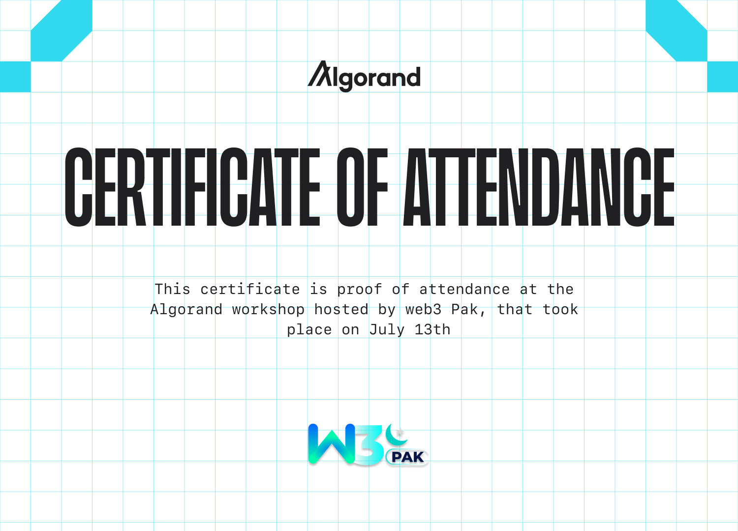Certificate of Completion: Algorand Workshop